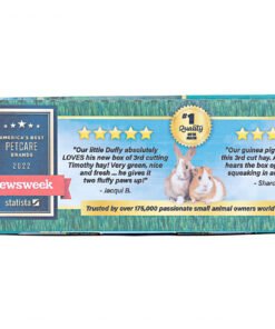 Have you got a Mr. Picky McPickypants living with you? A rabbit, guinea pig, or chinchilla who refuses to eat even the first stem? … Don’t give up on hay! Try getting your animal used to grass hay with 3rd cutting Timothy. It’s ultra-soft and very leafy with little stem; even the pickiest of picky eaters will eat this stuff. It’s perfect for animals suffering from mouth pain, or animals who need to gain some weight. (High protein, high fat.) 3rd cutting Timothy is typically a darker green color mixed with brown, but of course, this may vary; hay is a natural product.
